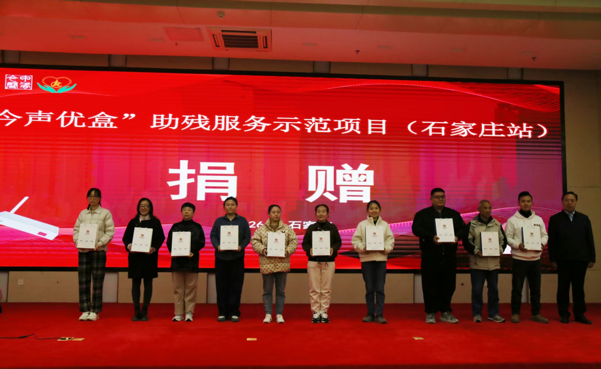 有爱方显无碍,科技点亮生活。2025年10月26日上午,河北省残疾人联合会、河北省残疾人福利基金会、河北省残疾人辅具资源中心、石家庄市残疾人联合会、石家庄市益民残疾人福利基金会、石家庄市聋人协会联合北京甲骨今声科技有限公司,共同组织发起以“科技助残,公益扶残”为主题的“今声优盒”(石家庄站)捐赠活动在石家庄举行。这次捐助活动主要是深入贯彻《中华人民共和国无障碍环境建设法》,大力倡导全社会推进无障碍环境建设,帮助残疾人群体跨越信息鸿沟,足不出户享受科技带来的变化,通过配备“今声优盒”实时字幕机顶盒,有效获取外界信息,改善他们精神文化生活。受助者代表、捐赠企业代表参加活动。